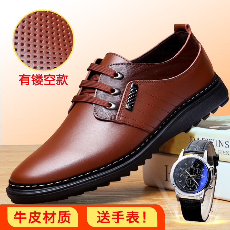 男士休闲皮鞋男鞋2021新款潮流秋季商务正装棕色真皮牛皮春秋鞋子热门设计联盟服务商